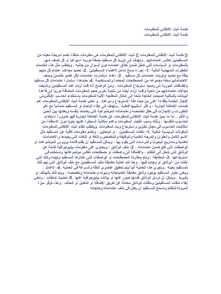 أضواء على مهارات البحث ومصادر المعلومات خدمة البث الانتقائي للمعلومات