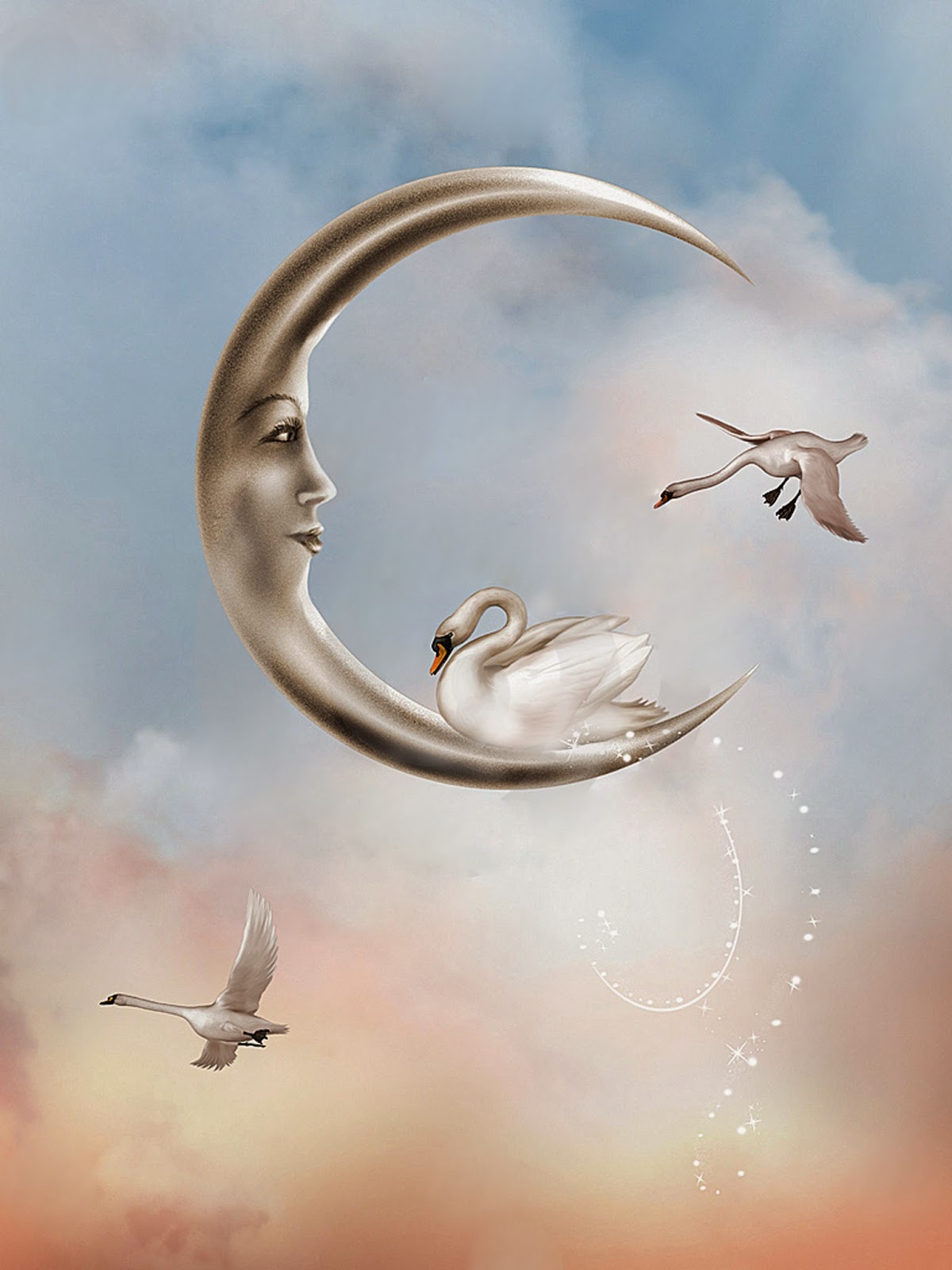 خلفية رائعة من الطبيعة طيور وقمر واشجار ملف مفتوح