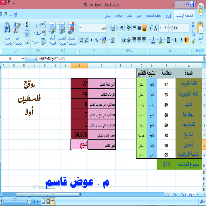 Excel تطبيق لحساب معدل علامات طالب مع النتيجة والتقدير Earn Money