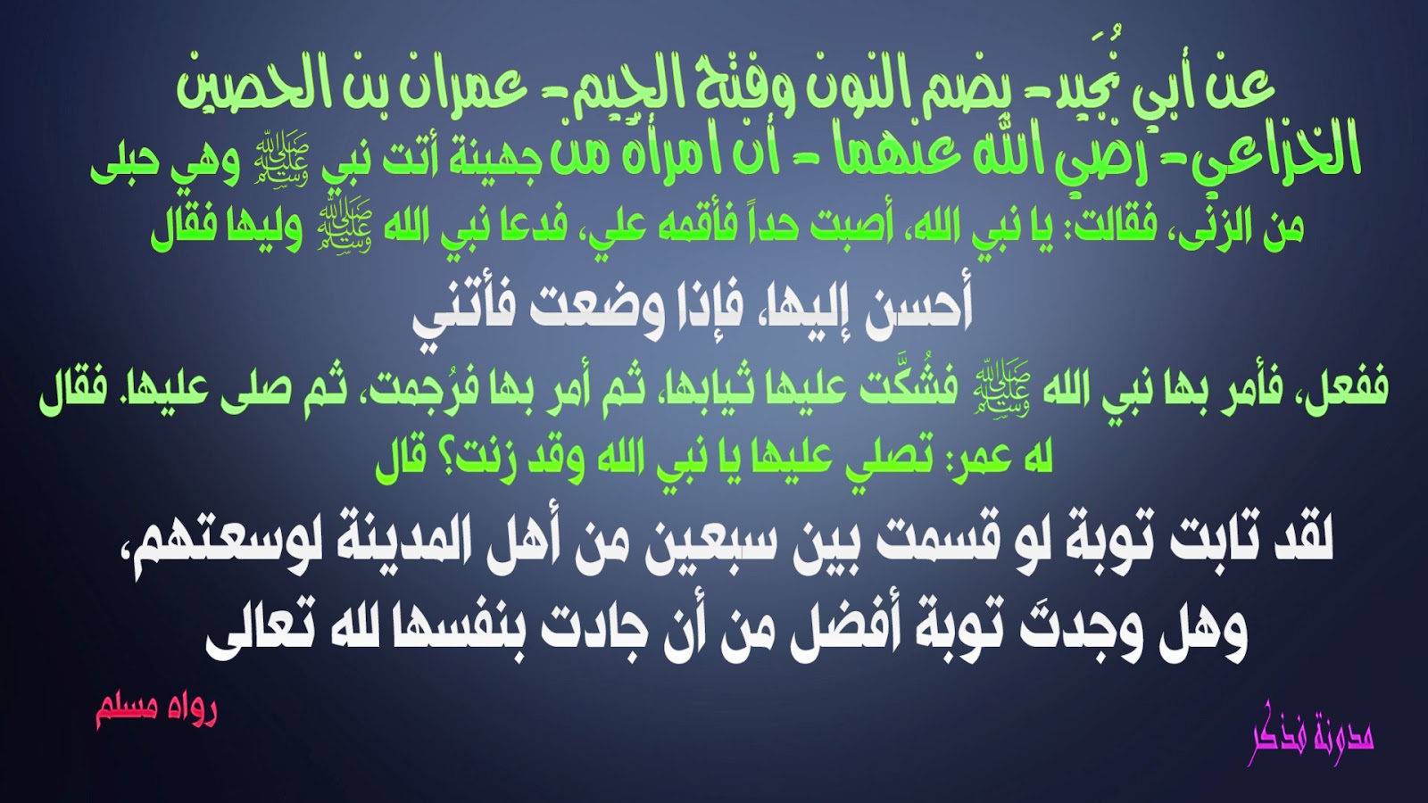 شرح حديث أن امرأة من جهينة أتت رسول الله وهي حبلى من الزنى فذكر