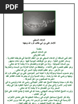 الحزب السيفى للإمام علي كرم الله و ج ـهـ ه وتصاريفه